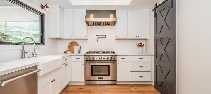 kitchen flat perimeter panel cabinet shaker modern crown farmhouse homebunch styles cabinets interiors interior floating metal decor shelf shelving construction